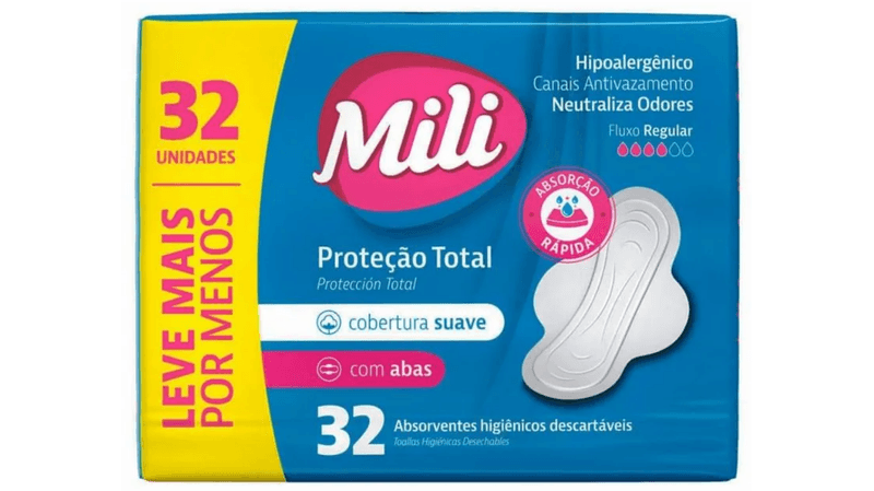 Absorvente Mili Proteção Total Cobertura Suave Com Abas 32 Unidades.