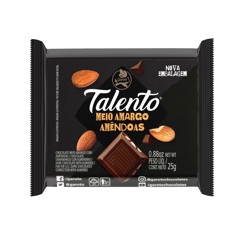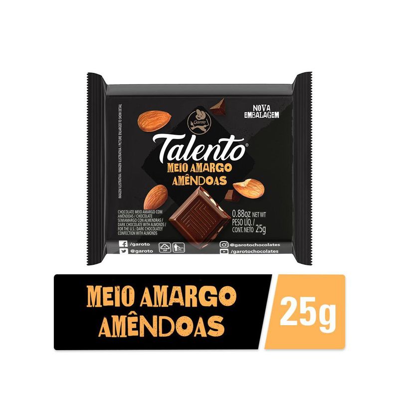 Chocolate Talento Mini Meio Amargo E Amêndoas 25g