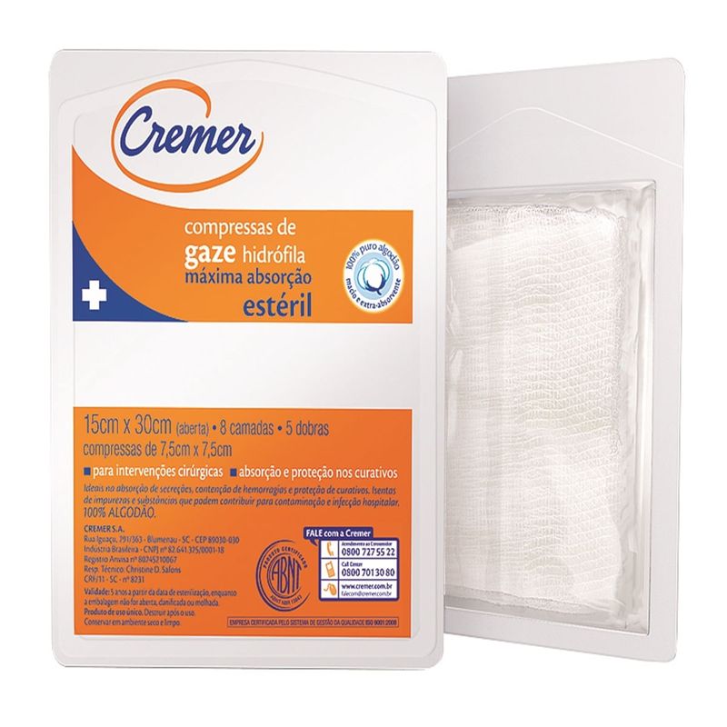 Saúde e Bem EstarOrtopédicosCompressaCompressa de Gaze cremer 11 Fios com 10 Unidades
