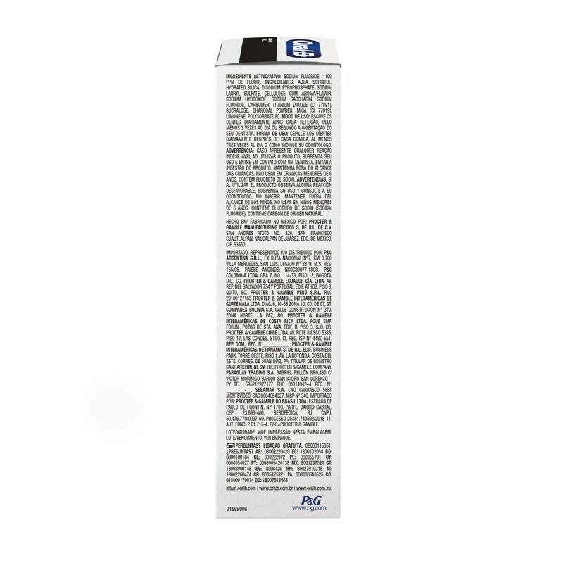 creme Dental Oral-B 3D White Charcoal Menta 102g