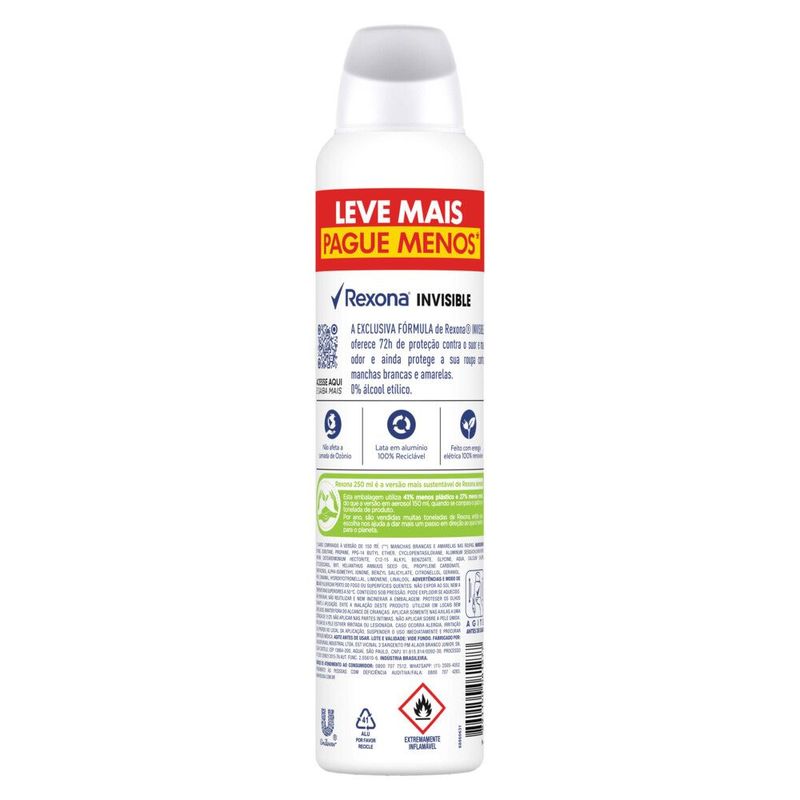 Desodorante Rexona Invisible 72H Aerossol 250ml