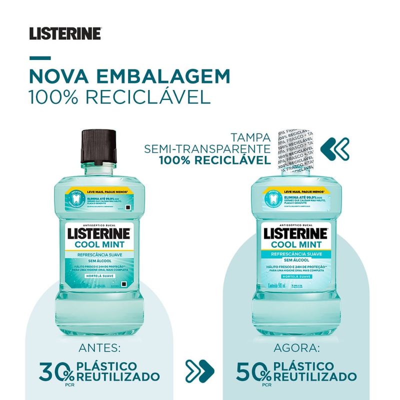Enxaguante Bucal Listerine Zero Cool Mint Leve 500ml Pague 350ml