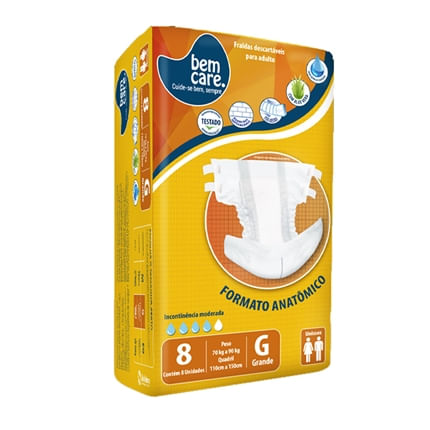 Saúde e Bem EstarIncontinência AdultaFralda GeriátricaFralda Geriátrica Bem Care Tamanho G com 8 Unidades