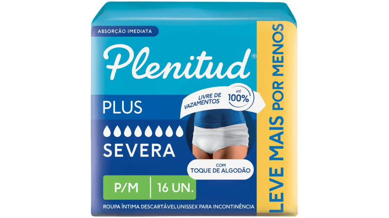 Fralda Geriátrica Plenitud Protect Plus Tamanho P/M com 16 Unidades