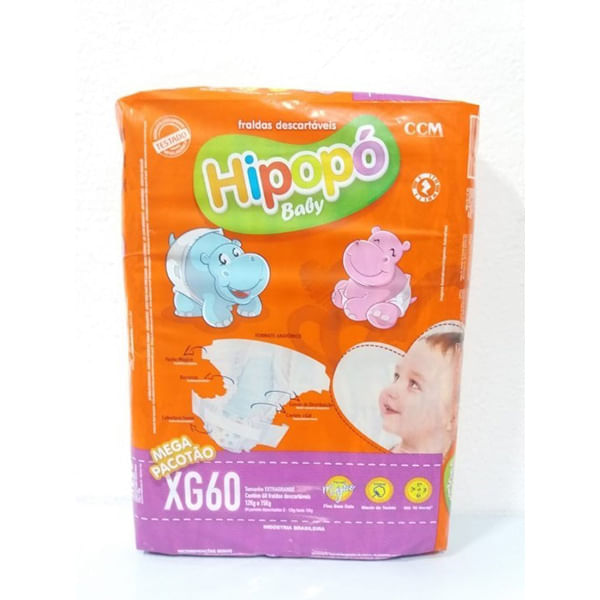Mundo InfantilCuidados com BebêFraldaFralda Hipopó Baby Mega Tamanho Eg Descartável com 60 Unidades