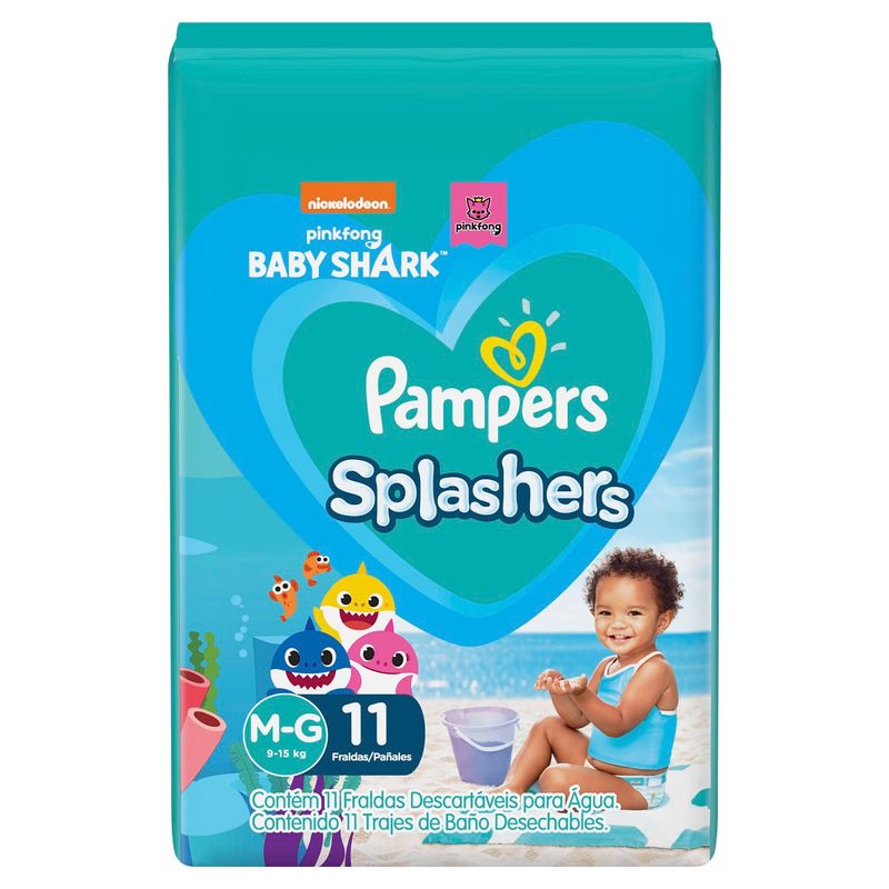 Fralda Pampers Splashers Baby Shark Tamanho M/G com 11 Unidades