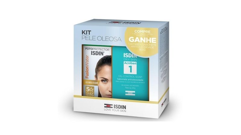 Cuidados DiáriosFacialProtetor SolarKit Proteçao Solar Isdin Pele Oleosa Protetor Solar Facial Fusion Water FPS 60 50ml e Sabonete Antioleosidade Acniben 1 80ml