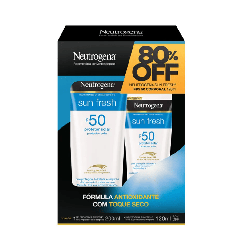 Kit Protetor Solar Neutrogena Sun Fresh Fps 50 200ml + 1 Protetor Solar Neutrogena Sun Fresh Fps 50 120ml 80% Off