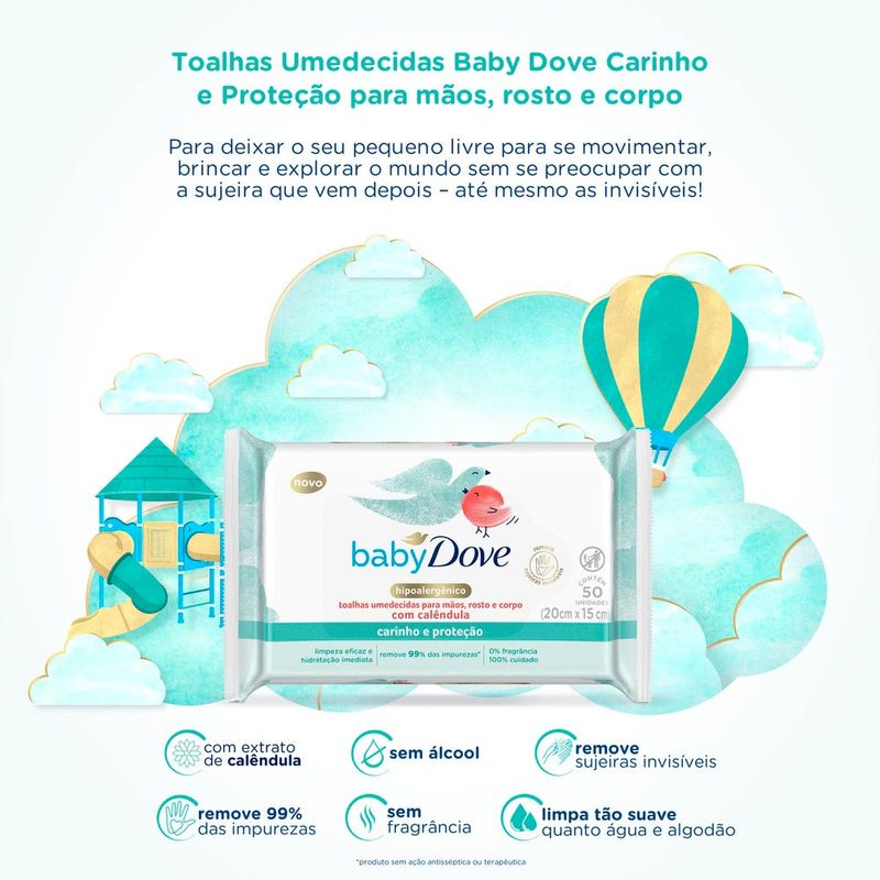 Lenço Umedecido Baby Dove Hidratação Carinho E Proteção com 50 Unidades