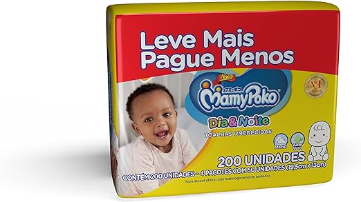 Lenco Umedecido Mamypoko Dia Noite Leve Mais Pague Menos 200 Unidades