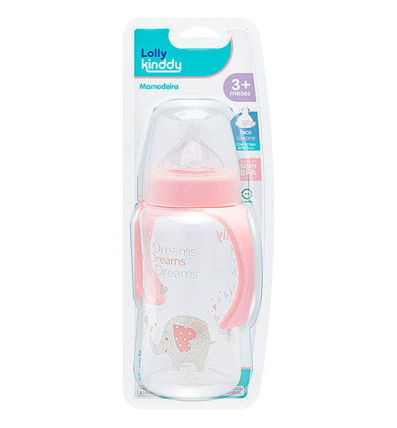 Mundo InfantilAmamentaçãoMamadeiraMamadeira Lolly Big Special Bico de Silicone Ortodôntico líquidos Ralos Rosa 350ml