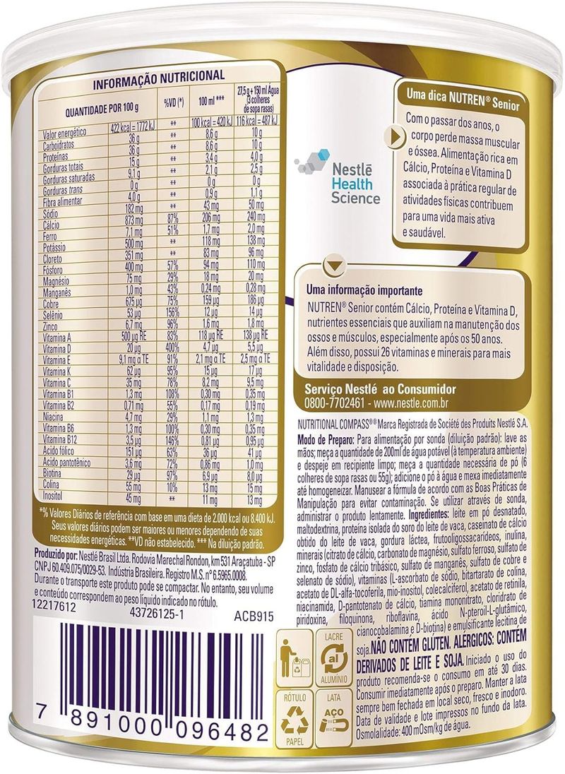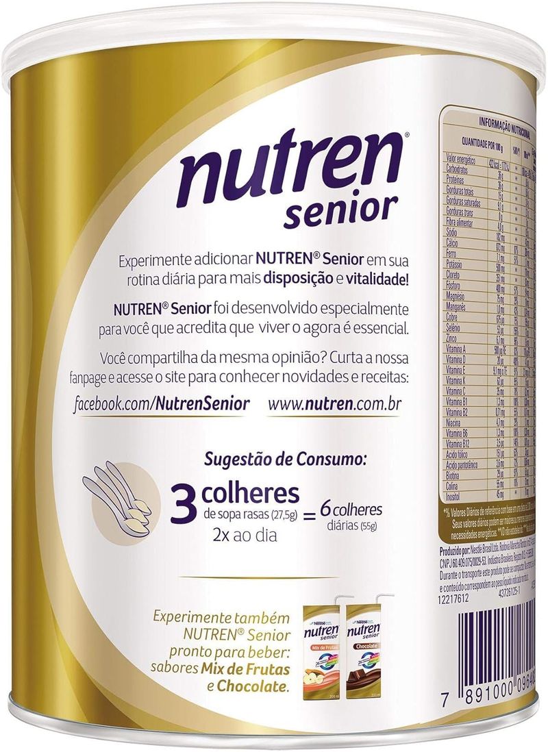 SuplementosAdultoLeiteNutren Senior Nestlé Sem Sabor 370g