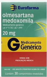 Olmesartana Medoxomila Eurofarma 20mg com 30 comprimidos