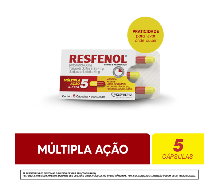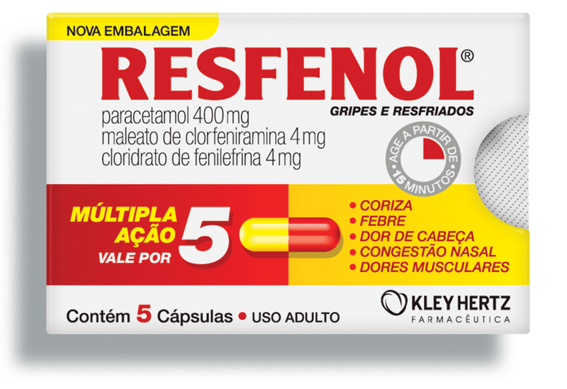 Resfenol Kley Hertz 400mg+ 4mg+ 4mg com 5 cápsulas