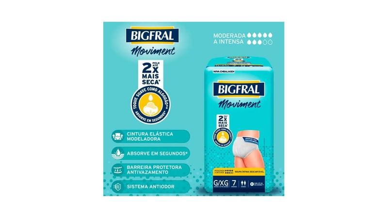 Saúde e Bem EstarIncontinência AdultaFralda GeriátricaRoupa Íntima Bigfral Moviment Unissex Descartavel Tamanho Gd/Xg com 7 Unidades