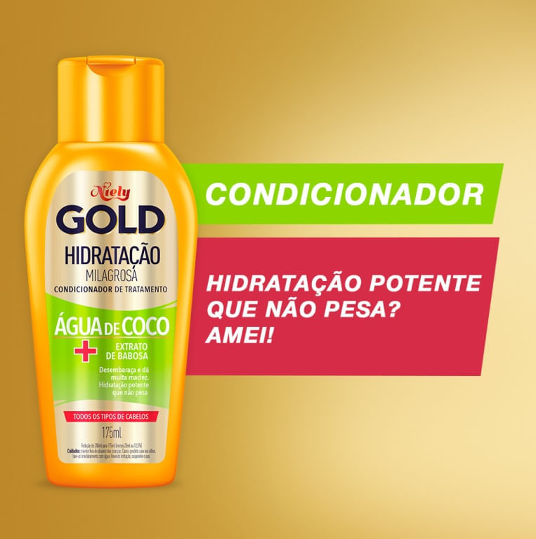 Shampoo+ Condicionador Niely Gold Hidratação Milagrosa Água de Coco + Babosa 275ml+ 175ml