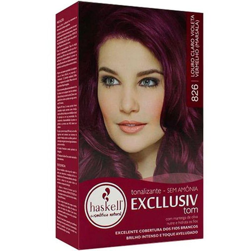 Tintura Tonalizante Haskell 826 Louro Claro Violeta Vermelho 40g