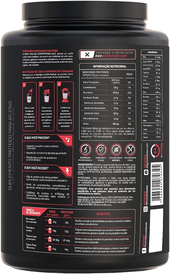 SuplementosEsportivaProteínaWhey Protein Concentrado Dux Chocolate 900g Pote